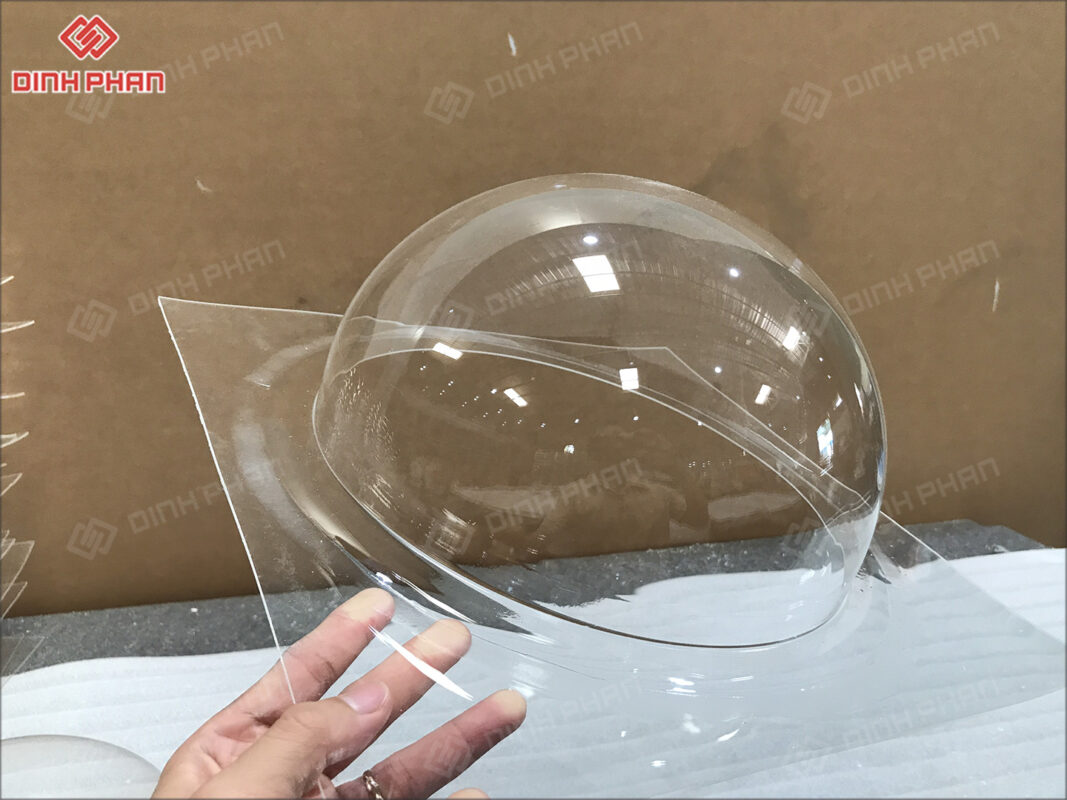 + Bước 4: Ép nổi mica từ khuân 3D, Tạo hình kệ trưng bày, để nguội. (Lưu ý rằng bước này đòi hỏi sự tỉ mỉ và chi tiết. Việc làm này giúp thành phẩm trở nên hoàn hảo và có chất lượng tốt)